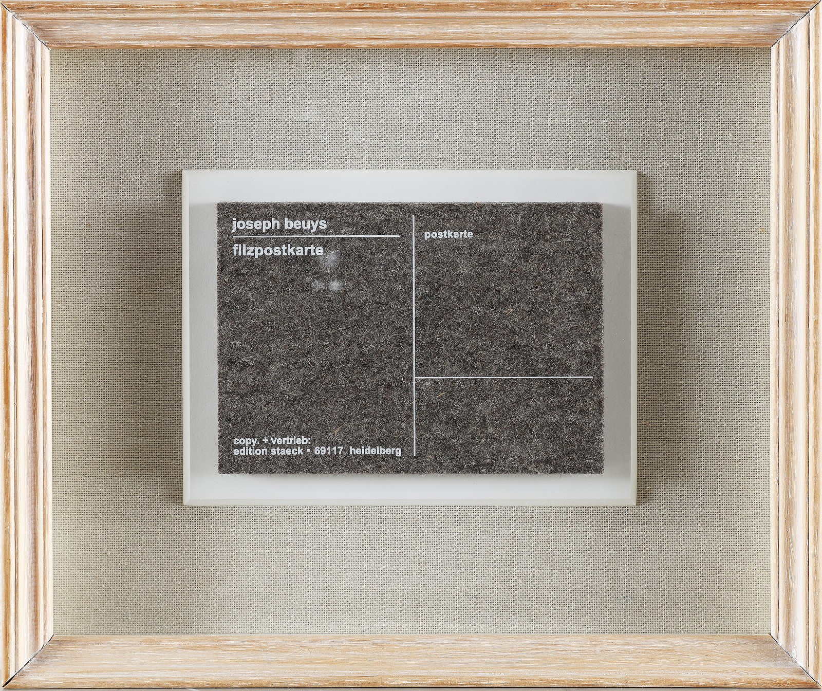 BEUYS JOSEPH (1921 - 1986) Filzpstkarte. . Cartolina. Cm 15,00 x 10,50 x 0,90. Edizioni Staeck, Heidelberg 1985. Pubblicato sul catalogo Schellmann, ed. 8a, 1997, p. 396. Cornice presente
