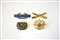Lotto composto da tre fregi da uniforme e da un distintivo in metallo smaltato. Vari stati
