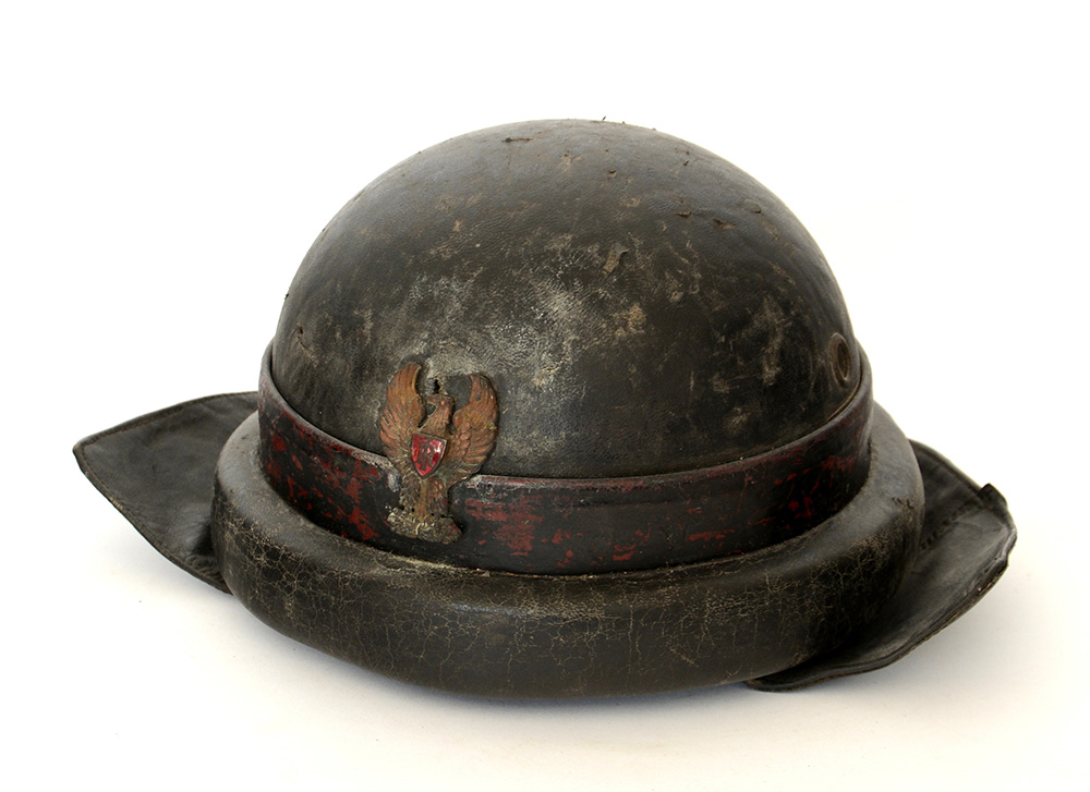 Casco in cuoio da motociclista della Polizia Stradale. Anni '50
