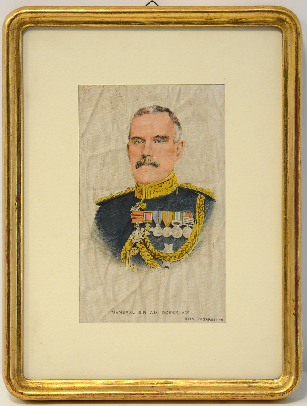 Stampa su seta (cm 15x10) con ritratto del generale Robertson. II quarto del XX secolo