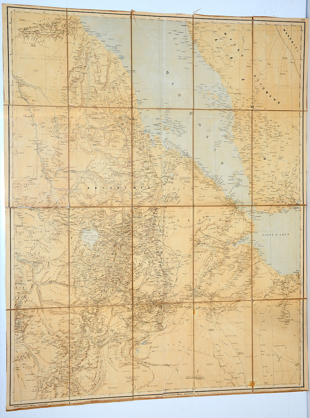 Importante carta militare dell'Abissinia, divisa in parti e montata su tela, editata dall'Istituto Geografico militare nell'anno 1885