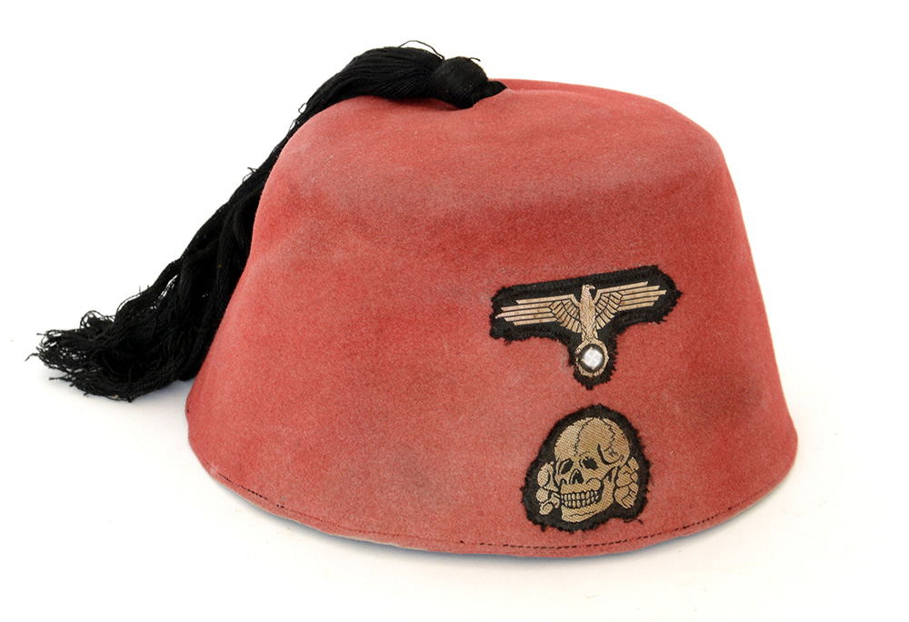 Fez di panno di colore rosso con fregi, di reparto delle SS balcaniche (Serbia e Crozia). II Guerra Mondiale. All'interno timbro di produzione a Parigi durante l'occupazione nazista