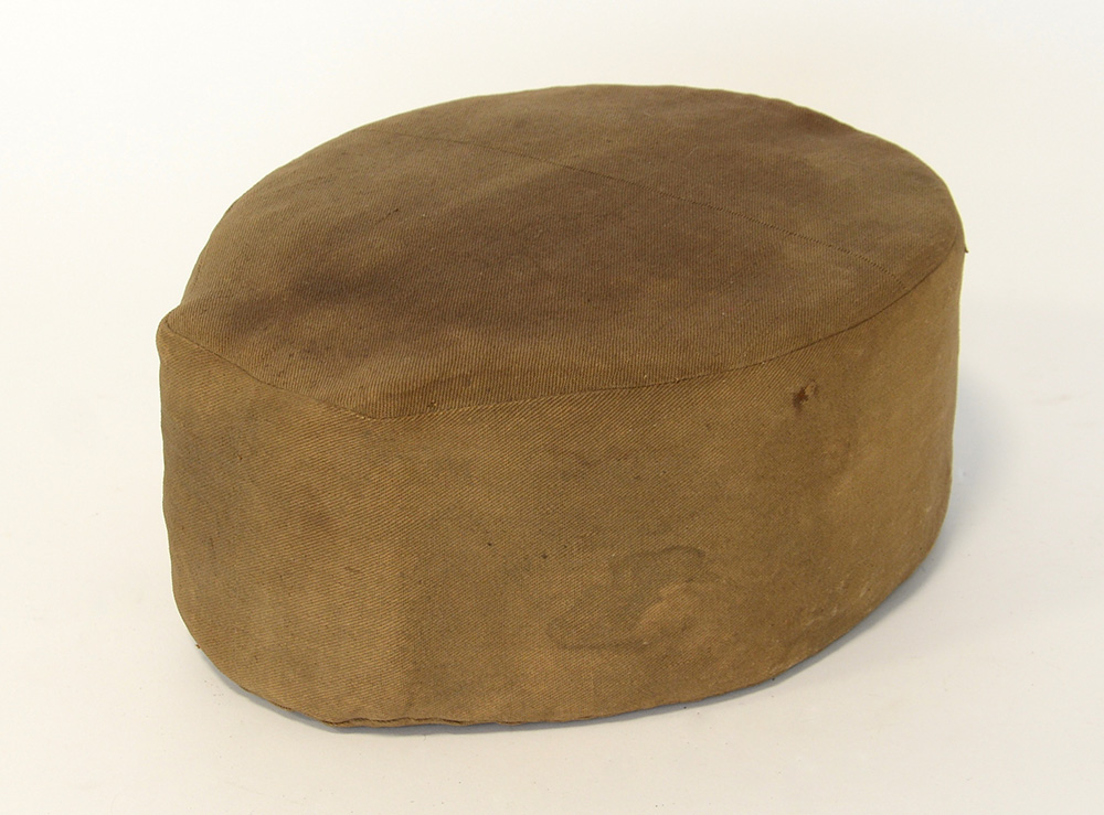 Curioso colbacco in sughero ricoperto di tela a cachi. India coloniale....
