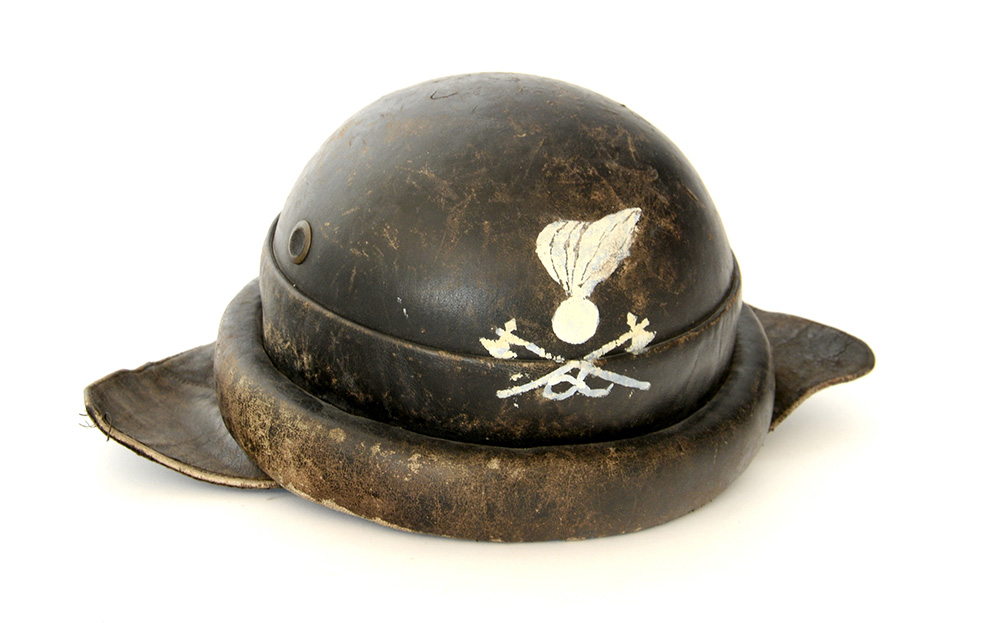 Casco in cuoio da carrista, modello 1935. Regio Esercito Italiano, passato in uso al genio
