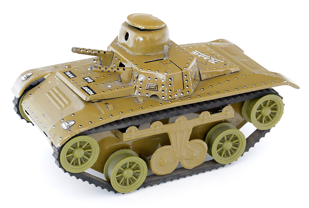 Giocattolo in latta a molla: carro armato Tchad, fabbricato in Francia dalla JUOSTRA negli anni '50/'60. In buono stato