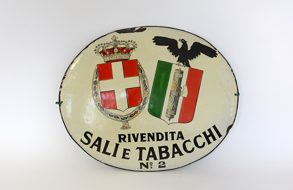 Lotto 1041 | Placca smaltata di forma ovale della rivendita Sali e Tabacchi, numero 2 (cm...
