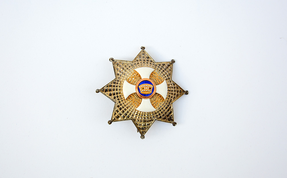 Placca dell'Ordine della Corona d'Italia del grado di grande ufficiale in oro e argento e smalti. Inizi del secolo XX