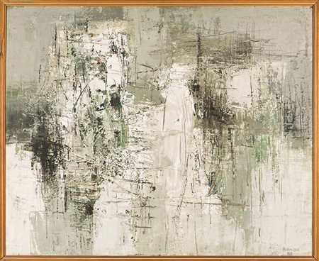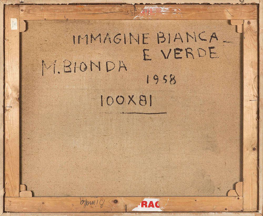 Mario Bionda (1913-1985), Immagine bianca e verde, 1958, olio su tela, cm 81x100 firmato e datato in basso a destra intitolato e datato al retro