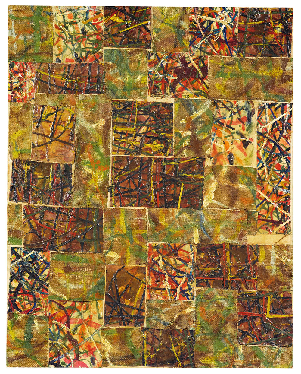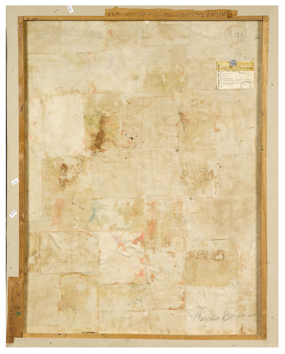 Remo Bianco (1922-1988), Collage, 1953, tecnica mista e collage su tela, cm 79x100 firmato e datato al retro Etichetta al retro VIII Quadriennale nazionale d'arte (dicembre 1959 - aprile 1960) Roma, Esposizioni: VIII Quadriennale nazionale d'arte, dicembre 1959 - aprile 1960, Roma