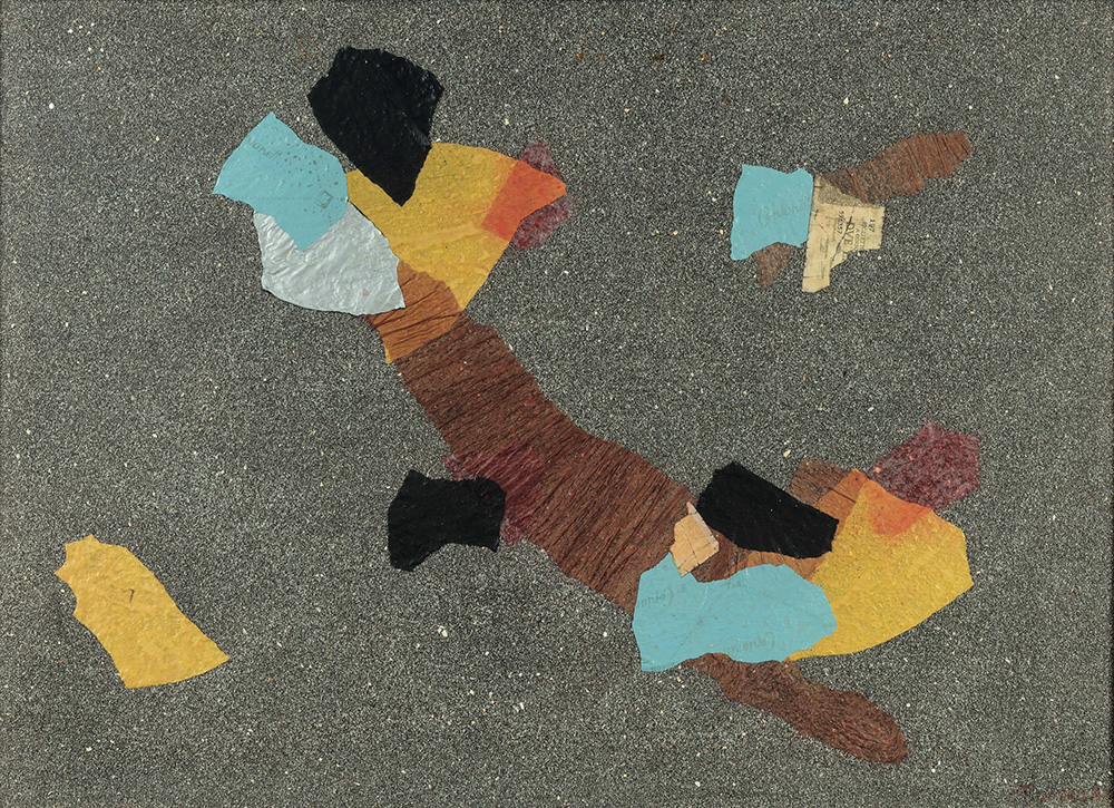 Giulio Turcato (1912-1995), Due lire, tecnica mista e collage su tela, cm 50x70 firmato in basso a destra Etichetta al retro Michelangelo Arte, Bergamo Opera registrata presso l'Archivio Giulio Turcato con il n. E.77662138310/38310, Provenienza: Michelangelo Arte, Bergamo Galleria Soave, Alessandria