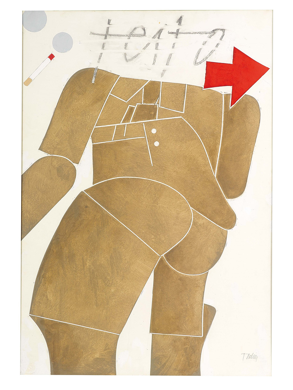 Emilio Tadini (1927-2002), Testo, 1974, tecnica mista su cartone Schoeller, cm 73x51 firmato in basso a destra intitolato in alto, Autentica su fotografia dell’artista Opera registrata presso l'Archivio Tadini con il n. ET/123/74 Provenienza: Galleria La Scaletta, S. Polo d’Enza, Reggio Emilia