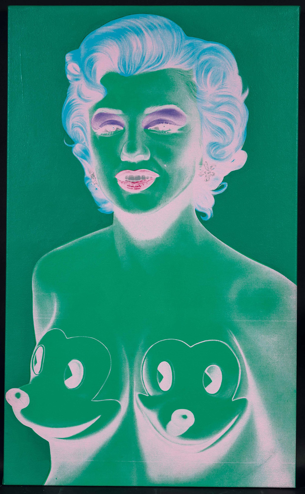 Ron English (1959), Pop Marilyn with Mickeys Negative screen, acrilico su tela, cm 89x55 firmato al retro