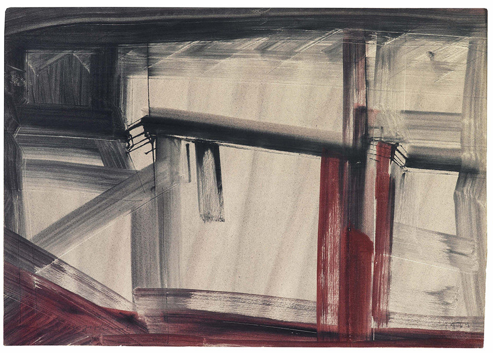 Sergio Romiti (1928-2000), Senza Titolo, 1979, tempera su carta applicata su tela, cm 45,5x64,5 firmato in basso a sinistra datato in basso a destra , Autentica su fotografia dell’artista
