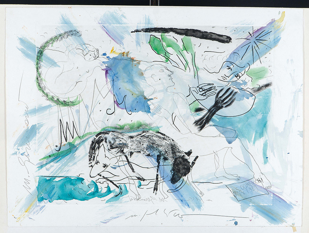 Mimmo Paladino (1948) Mimmo Germanà (1944-1992), Senza titolo, litografia acquarellata, cm 59,8x80,8 firmato in basso Paladino firmato sulla sinistra Germanà