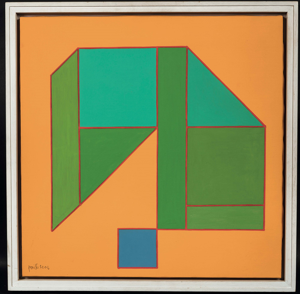 Achille Perilli (1927), Un giallo d’epoca, 2006, tecnica mista su tela, cm 50x50 firmato in basso a sinistra firmato, datato e intitolato al retro, Autentica su fotografia dell'artista in data 13 settembre 2006 Opera pubblicata sul Catalogo Generale con il n.180