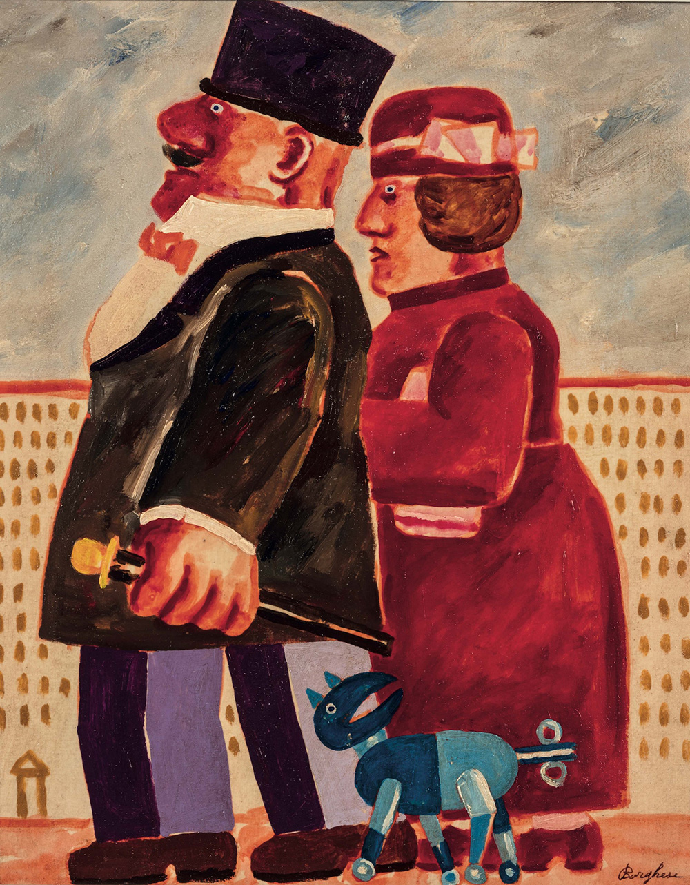 Franz Borghese (1941-2005), Coppia con cagnolino, olio su tela, cm 50x40...