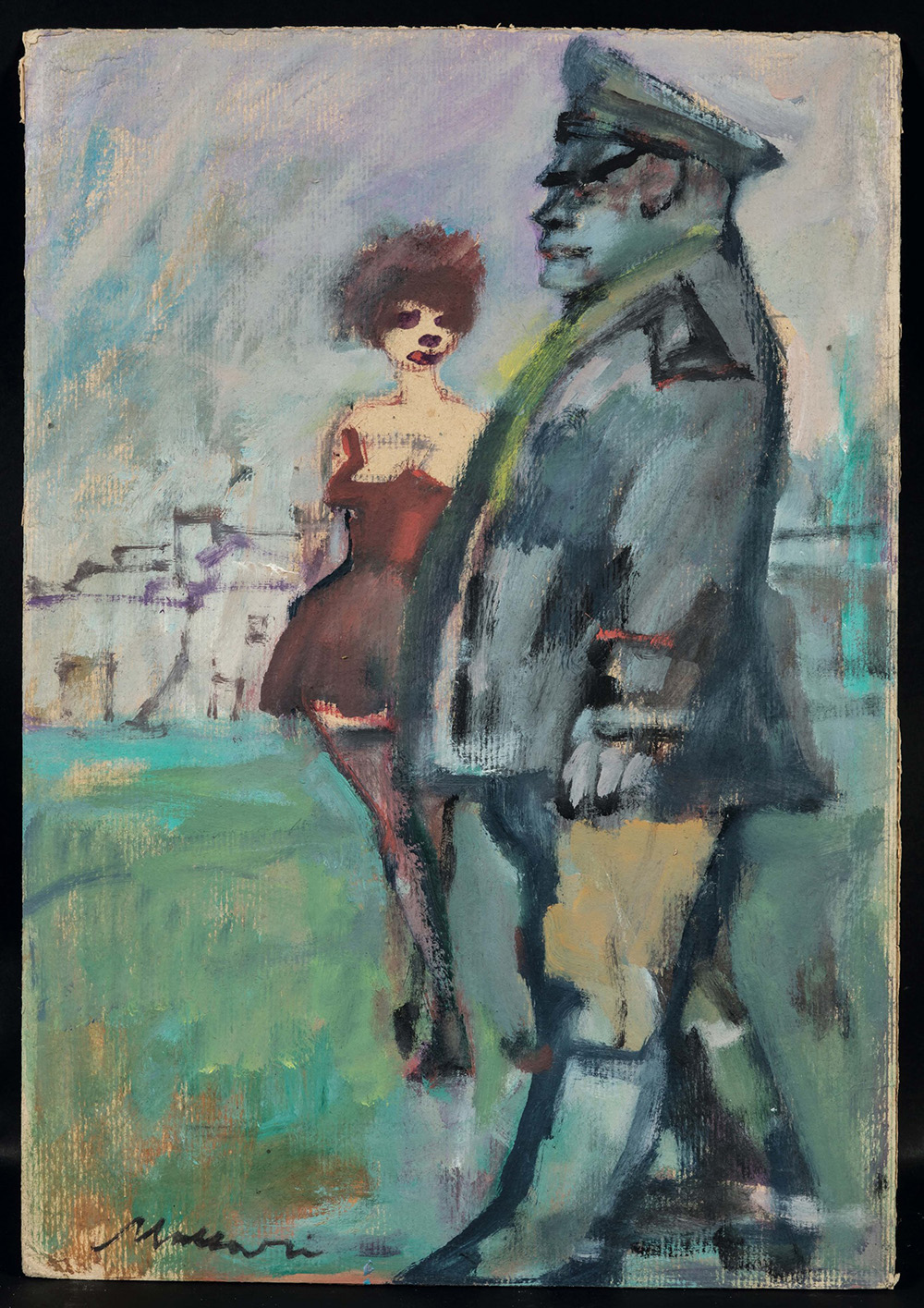Lotto 177 | Mino Maccari (1898-1989), Il maresciallo-Incontri, olio su cartone telato, cm...