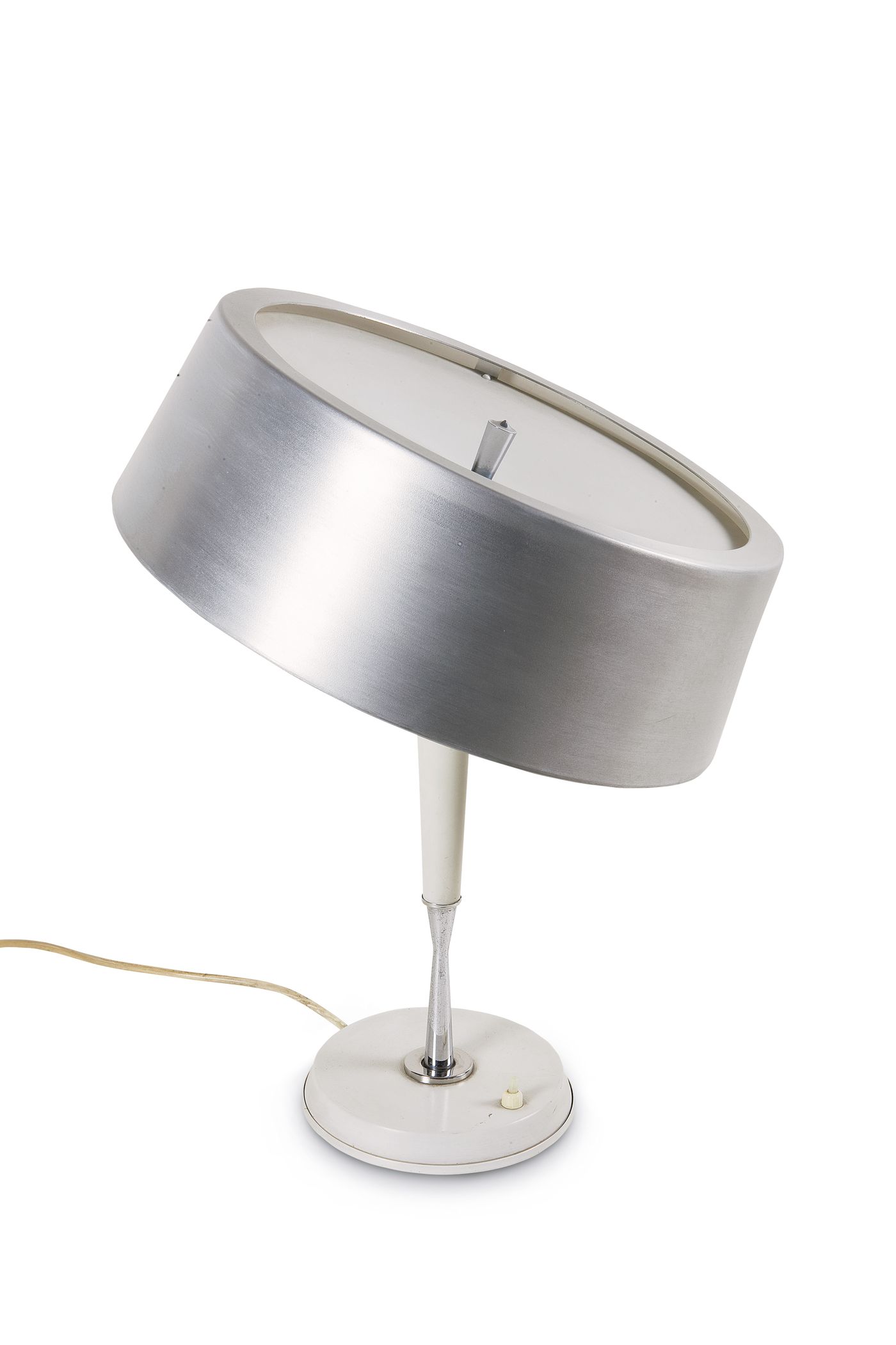 LAMPADA - Lampada da tavolo in alluminio laccato. Diffusore superiore in policarbonato opalino, paralume orientabile. 1965 circa. cm. 45x38