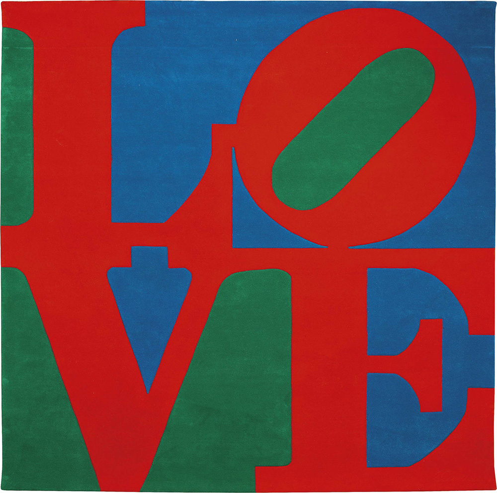 Robert Indiana New Castle 1928 Classic Love Tappeto, multiplo es. 49/75, cm. 305x305 Firma in basso a destra: Robert Indiana. Al verso etichetta con dati dell'opera, tiratura e firma: Robert Indiana / 49/75