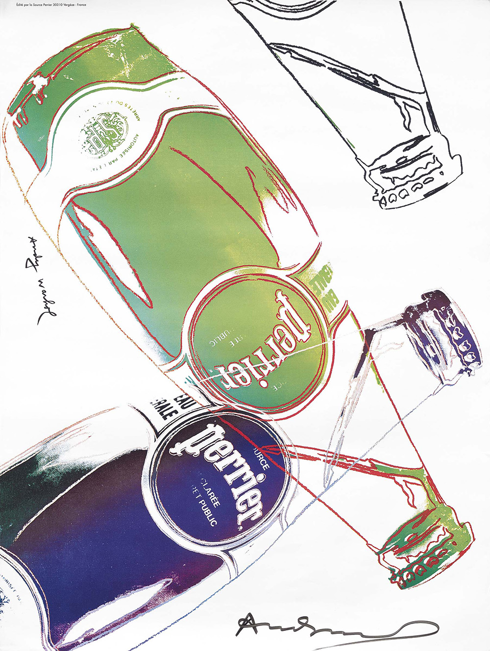 Andy Warhol Pittsburgh 1928 - New York 1987 Perrier Stampa offset, cm. 60x44,8 Firma in basso a destra: Andy Warhol