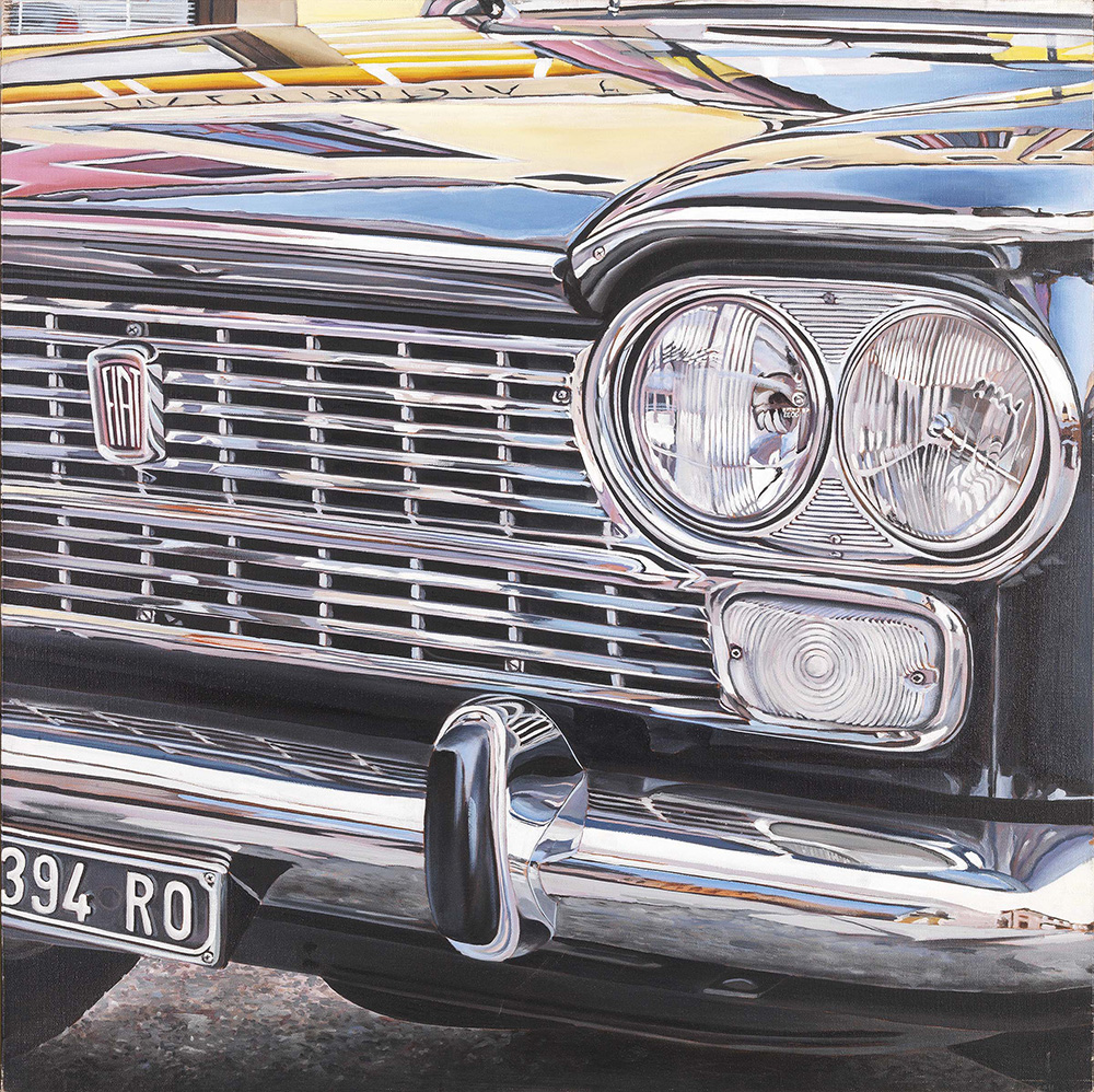Enrico Ghinato Lendinara (Ro) 1955 Fiat 1500, 2006 Olio su tela, cm. 101x100 Numero d'archivio, titolo, firma e data al verso sulla tela: Arch. 165 / Fiat 1500 / Enrico Ghinato / 2006. Foto autenticata dall'artista