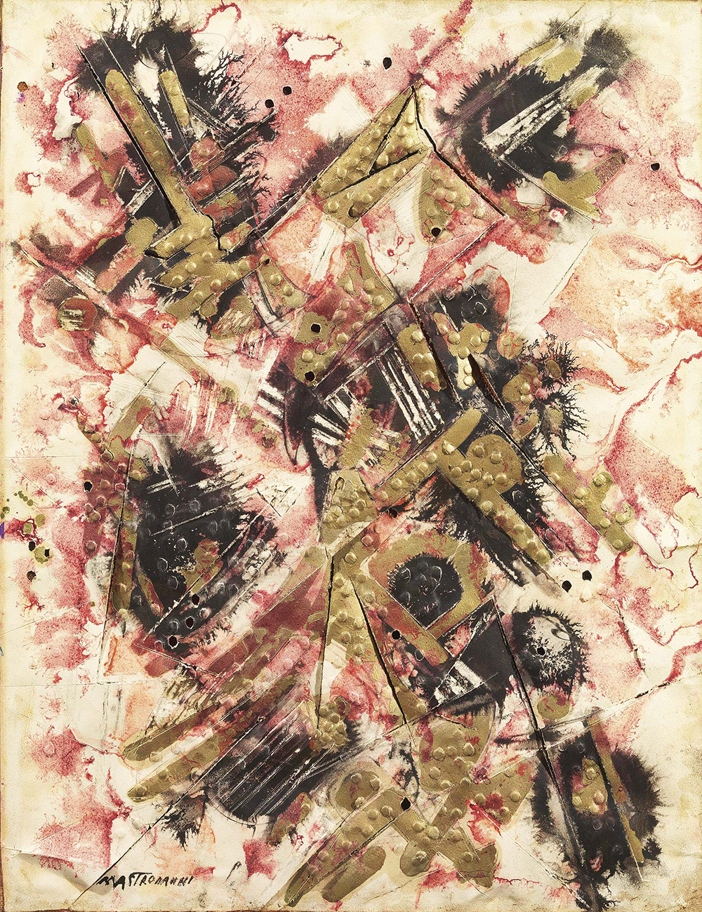Umberto Mastroianni Fontana Liri (Fr) 1910 - Marino Laziale (Roma) 1998 Senza titolo Tecnica mista su carta applicata su tela, cm. 69x53 Firma in basso a sinistra: Mastroianni