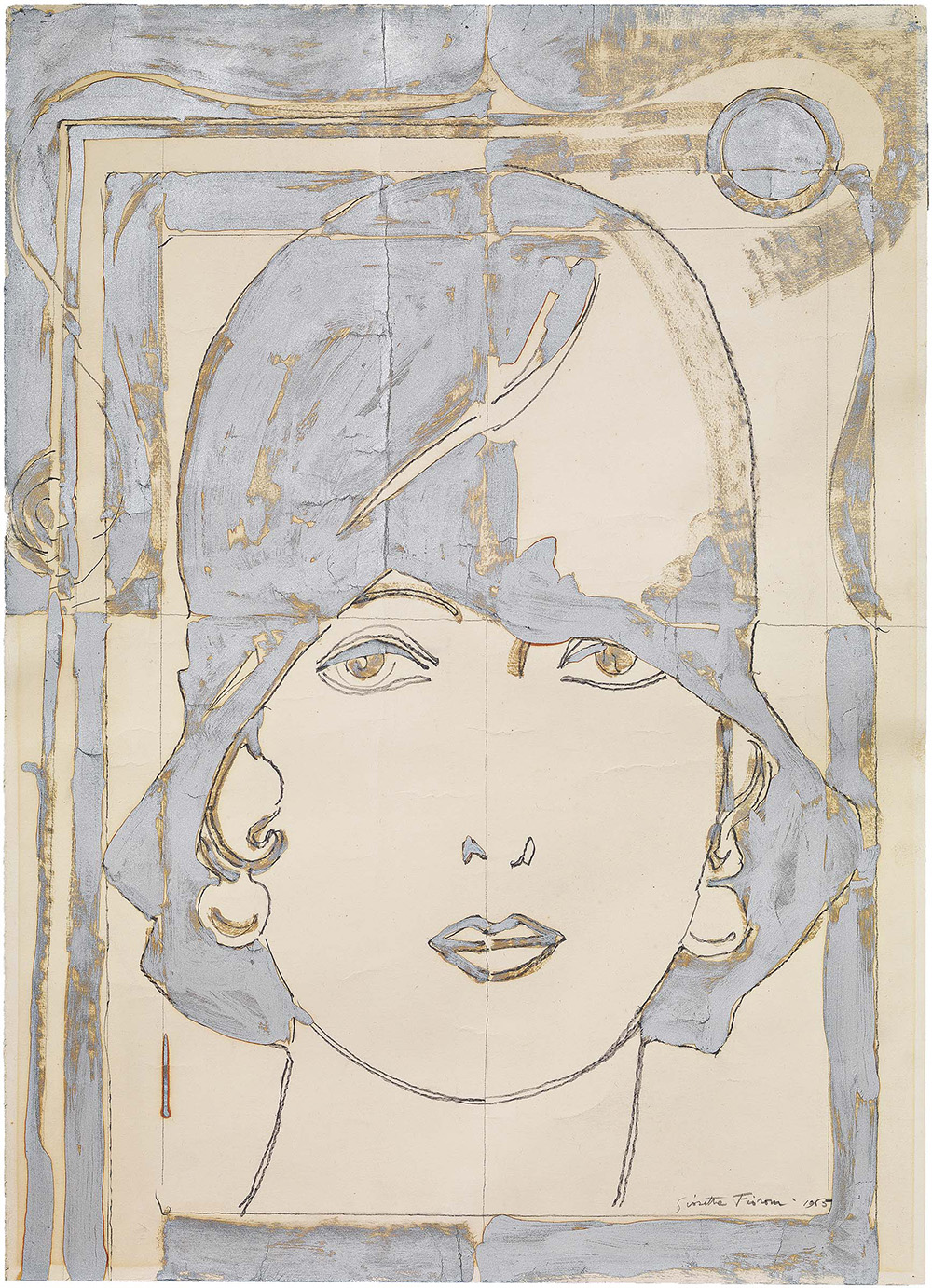 Giosetta Fioroni Roma 1933 Testa di donna, 1965 Tecnica mista su carta, cm. 70x50 Firma e data in basso a destra: Giosetta Fioroni 1965