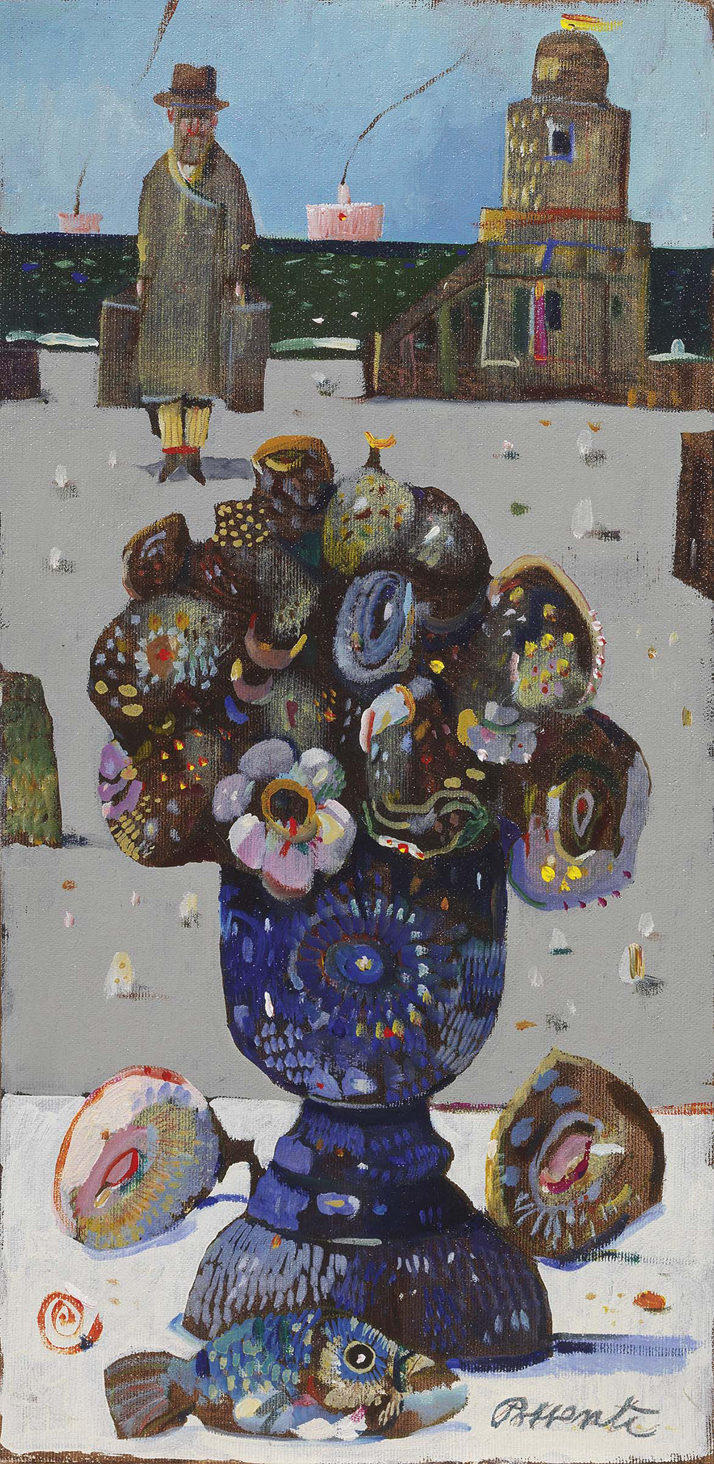 Antonio Possenti Lucca 1933 - 2016 Senza titolo, 1973 Olio su cartone telato, cm. 39,6x19,8 Firma in basso a destra e al verso: Possenti. Foto autenticata dall'artista con timbro Archivio delle Opere del Maestro Antonio Possenti, con n. 2272