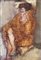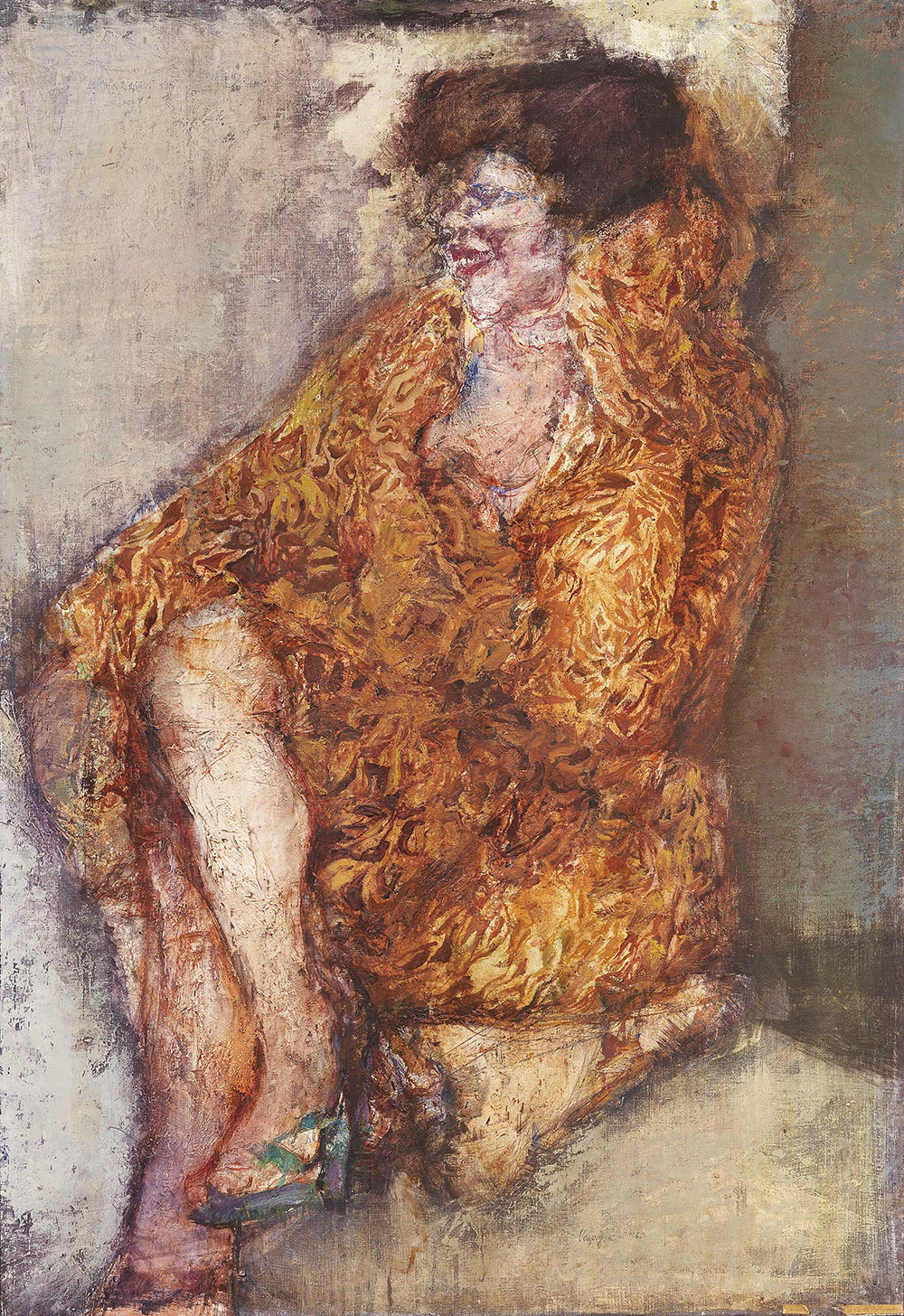 Renzo Vespignani Roma 1924 - 2001 Pelliccia di leopardo, 1960 Olio su tela, cm. 108x73 Firma e data in basso al centro: Vespignani 1960. Al verso sulla tela: etichetta Galleria d'Arte Santa Croce, Firenze, con n. 29: foto dell'artista con l'opera; sul telaio: etichetta Galleria Penelope, Roma