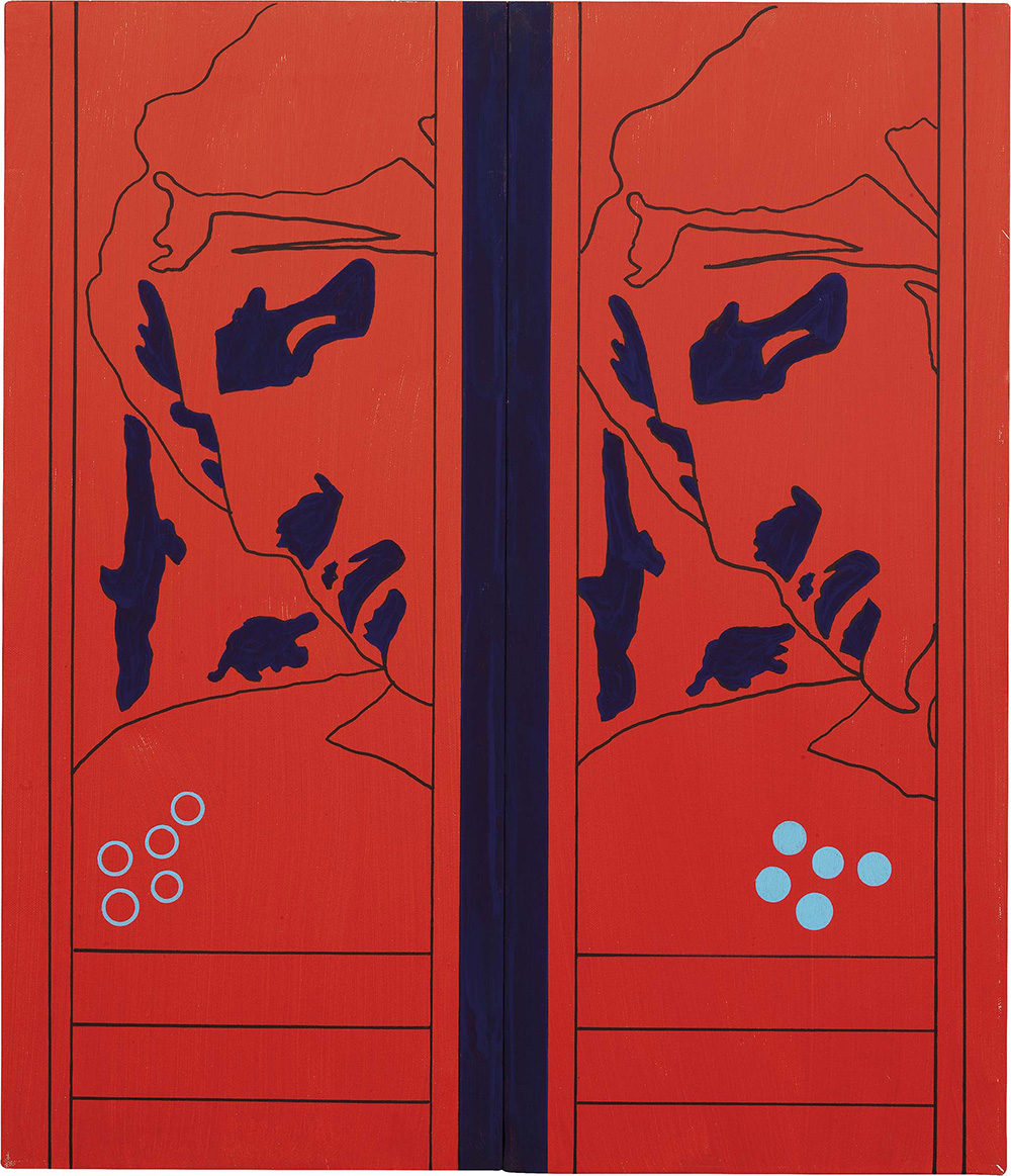 Tano Festa Roma 1938 - 1987 Da Michelangelo, 1978 Acrilico su tela, dittico, cm. 70,3x60,4 (due elementi di cm. 70,3x30,2 ognuno) Firma e data al verso sulla tela di uno dei due elementi: Festa 78. Certificato su foto Studio Soligo, Archiviazione Opere Tano Festa, con n. RMS787605016033