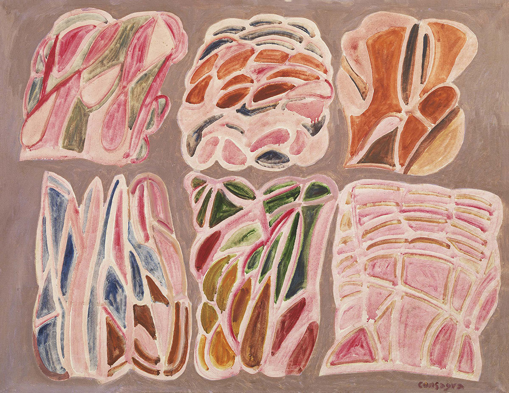 Pietro Consagra Mazara del Vallo (Tp) 1920 - Milano 2005 Fondo grigio-viola, (1984) Acrilico su tela, cm. 70,2x90 Firma in basso a destra: Consagra. Al verso sul telaio: etichetta Galleria d'Arte Banchi Nuovi, Roma. Storia: Collezione privata, Milano; Collezione privata
