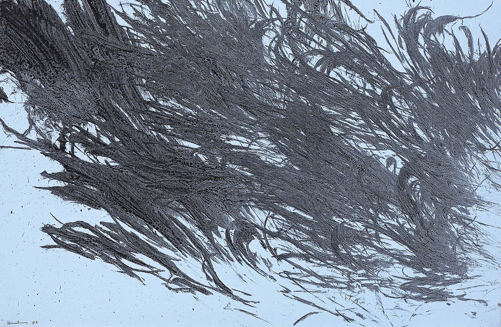 Hans Hartung Lipsia 1904 - Antibes 1989 T 1981-E1, 1981 Acrilico su tela, cm....