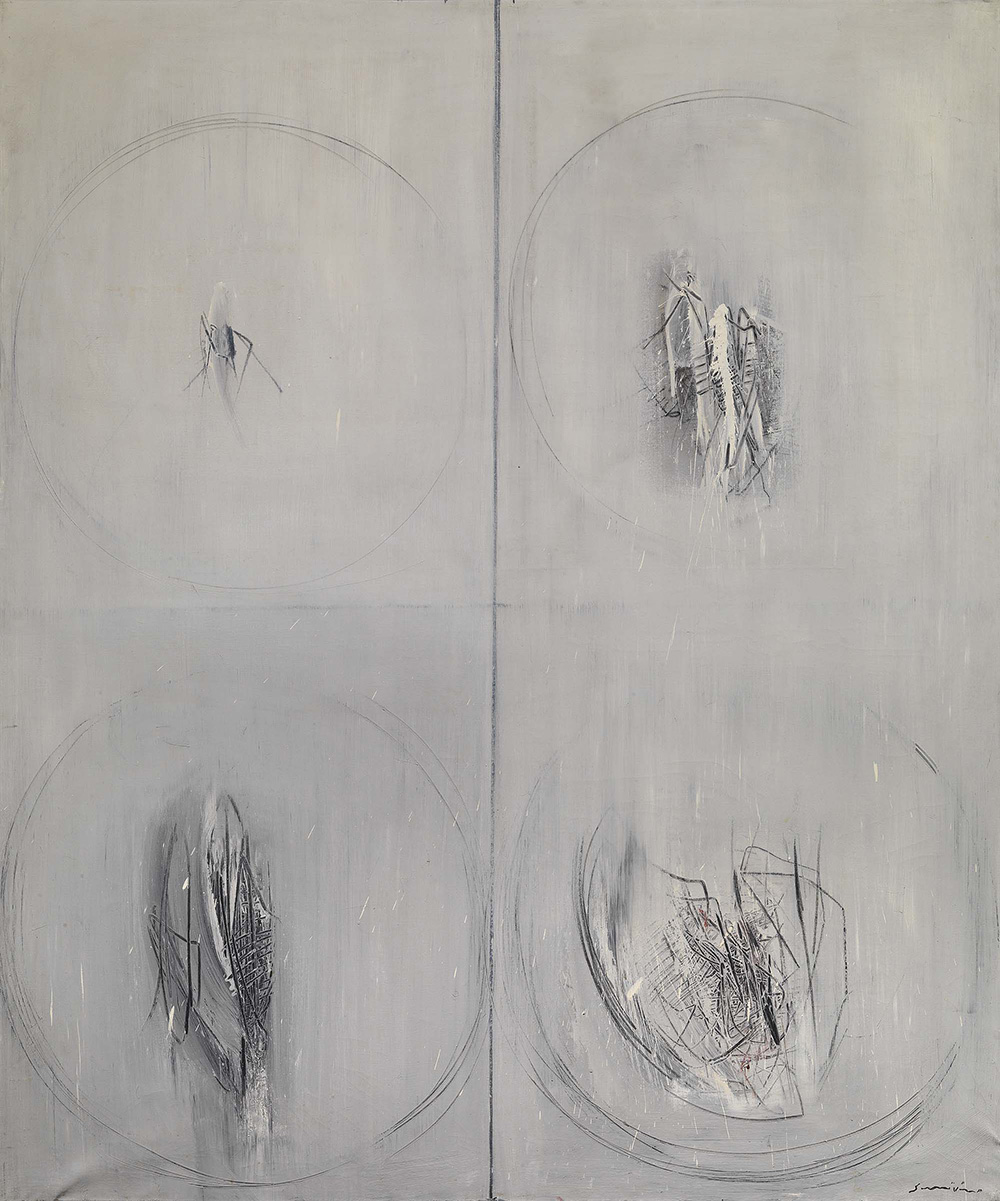 Emilio Scanavino Genova 1922 - Milano 1986 Germinazione, 1962 Olio su tela, cm. 146x120 Firma e data in basso a destra: Scanavino [1962]; firma, data e titolo al verso sulla tela: Scanavino 1962 / "Germinazione" / (da un libro di biologia). Storia: Galleria del Naviglio, Milano; Collezione Bergamasco, Alessandria; Collezione privata Certificato su foto di Giorgina Scanavino in data 15/10/98. Bibliografia: Carlo Pirovano, Giorgina Graglia Scanavino, Scanavino. Catalogo generale volume primo, Electa, Milano, 2000, p. 209, n. 1962 20 (con titolo errato).
