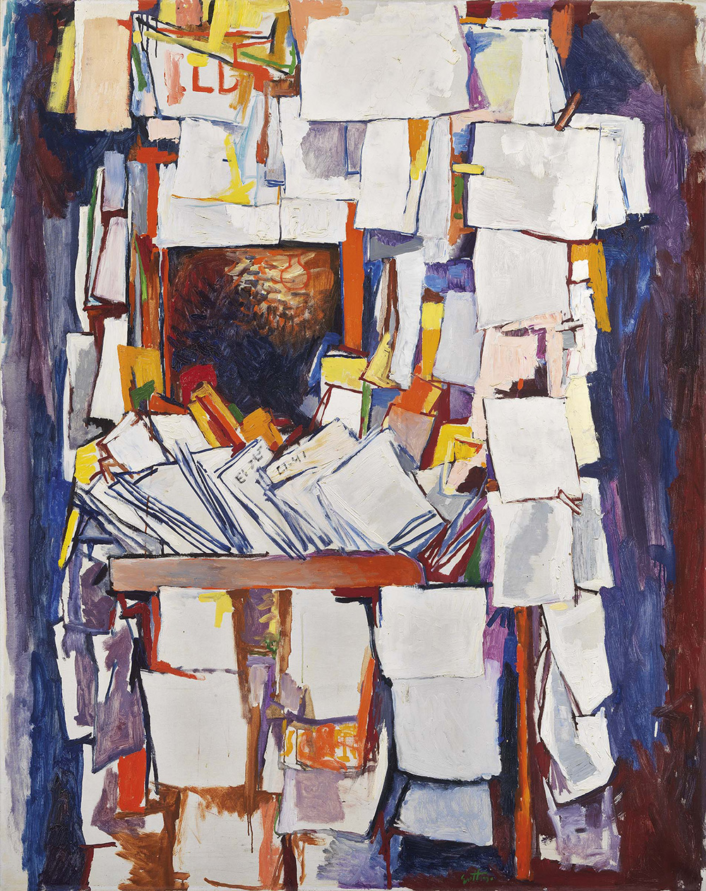 Renato Guttuso Bagheria (Pa) 1912 - Roma 1987 Edicola, 1965 Olio su tela, cm. 162x130 Firma e data in basso al centro: Guttuso; firma e data al verso sulla tela: Guttuso '65; sul telaio: etichetta Expo Montreal 1967, Pavillon des Communantés Européennes. Storia Collezione M. Mondadori, Milano; Collezione Boris Ferri, Pistoia; Galerie Krugier, Ginevra; Collezione privata, Faenza; Collezione privata Foto autenticata dall'artista. Esposizioni Expo Montreal 1967, Pavillon des Communantés Européennes, poi Melbourne, Camberra e Sydney; Guttuso 1937-1974, a cura di Duccio Trombadori, Ravenna, Galleria il Patio, 20 giugno - 30 settembre 1987, cat. n. 9, illustrato a colori; Renato Guttuso, Rovereto, Galleria Improvvisazione Prima, 19 aprile - 31 maggio 1997, poi Comune di Ala (Trento), ottobre - dicembre 1997, cat. n. 16, illustrato; Renato Guttuso "il rapporto con le cose", a cura di D. Guzzi, Francavilla al Mare, Museo Michetti, 25 giugno - 30 settembre 2005, cat. p. 72, n. 19, illustrato a colori; Guttuso e gli amici di Corrente, a cura di Enrico Dei, Seravezza, Palazzo Mediceo, 1 luglio - 11 settembre 2011, cat. p. 105, illustrato a colori. Bibliografia Mario De Micheli, Guttuso, Vanessa Editoriale d'Arte, Milano, 1976, copertina; Enrico Crispolti, Catalogo ragionato generale dei dipinti di Renato Guttuso, vol. 2, Giorgio Mondadori, Milano, 1984, p. 296, n. 65/5