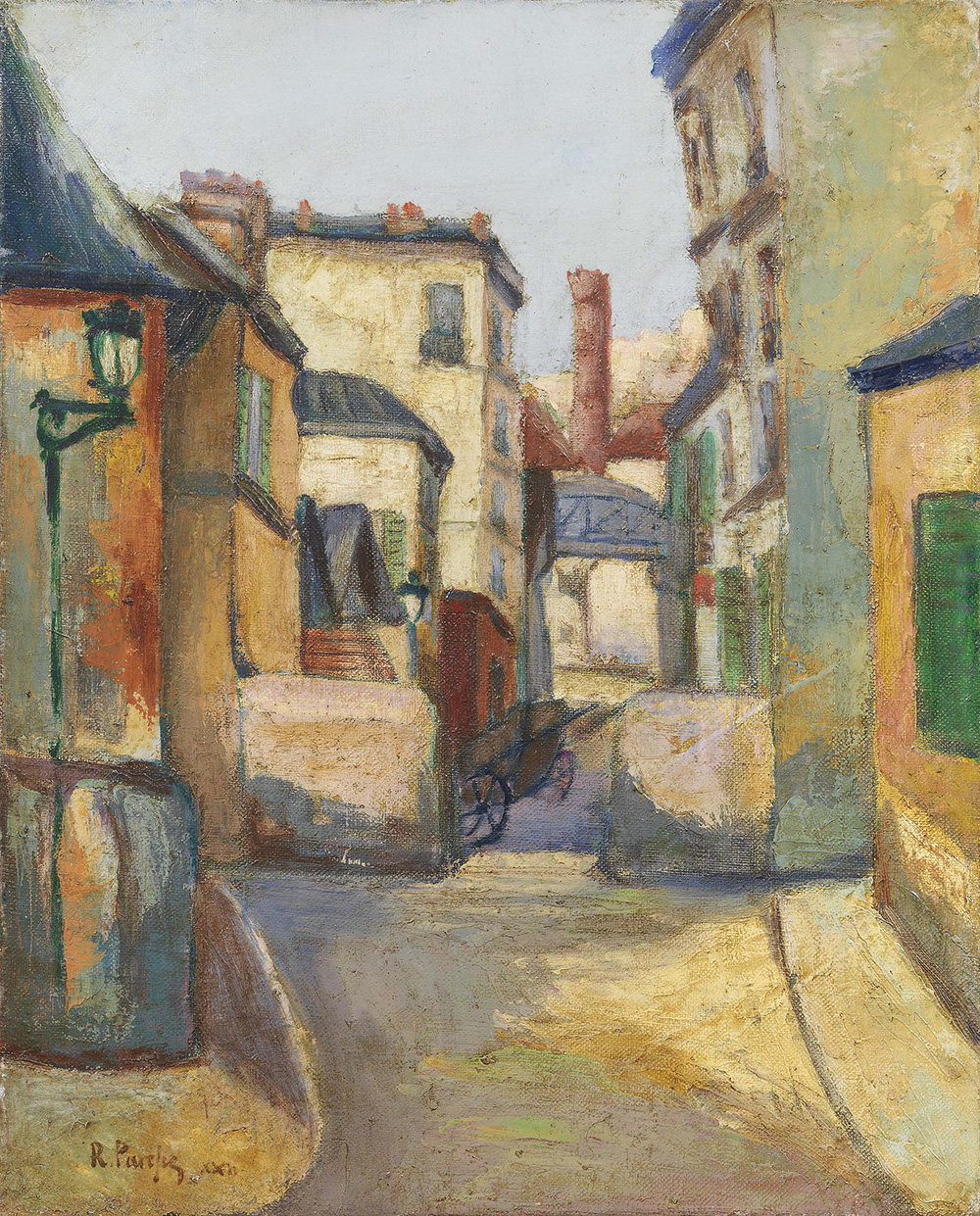 René Paresce Carouge 1886 - Parigi 1937 Paesaggio, 1922 Olio su tela, cm. 41x33 Firma e data in basso a sinistra: R. Paresce / XXII. Storia Collezione privata, Parigi; Collezione privata Esposizioni Il Novecento italiano. Artisti intorno a Margherita Sarfatti, Cortina d'Ampezzo, Farsettiarte, 10 - 31 agosto 2016, cat. pp. 85, 133, n. XXVI, illustrato. Bibliografia Rachele Ferrario, René Paresce. Catalogo ragionato delle opere, Skira editore, Milano, 2012, p. 174, n. 21/22
