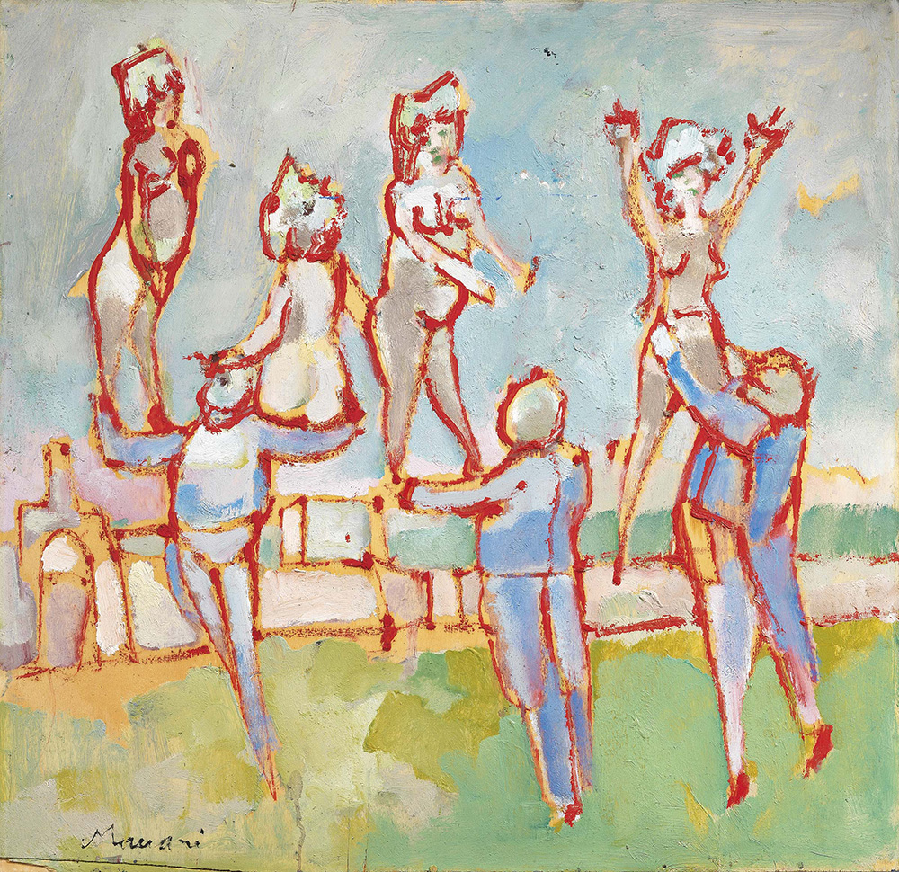 Mino Maccari Siena 1898 - Roma 1989 Dame e cavalieri, (1961) Olio su tavola,...