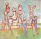 Mino Maccari Siena 1898 - Roma 1989 Dame e cavalieri, (1961) Olio su tavola, cm. 60x61 Firma in basso a sinistra: Maccari; titolo al verso sulla tavola: Dame / e Cavalieri