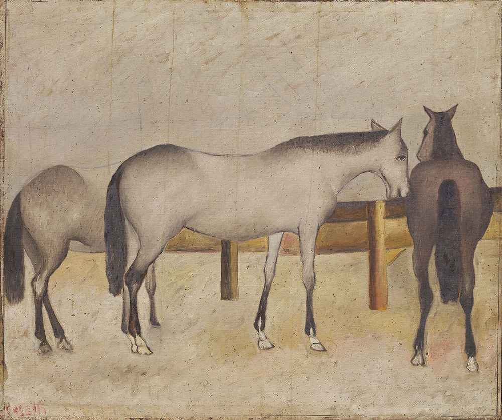 Giuseppe Cesetti Tuscania (Vt) 1902 - 1991 Cavalli, 1932-35 Olio su tela, cm. 55x64,5 Firma in basso a sinistra: Cesetti. Storia La Luce Editrice, Firenze; Collezione privata Bibliografia Rossana Bossaglia, Paolo Levi, Catalogo generale dei dipinti di Giuseppe Cesetti I° repertorio 1923-1989, Giorgio Mondadori, Milano, 1989, p. 15, n. 32-35/1