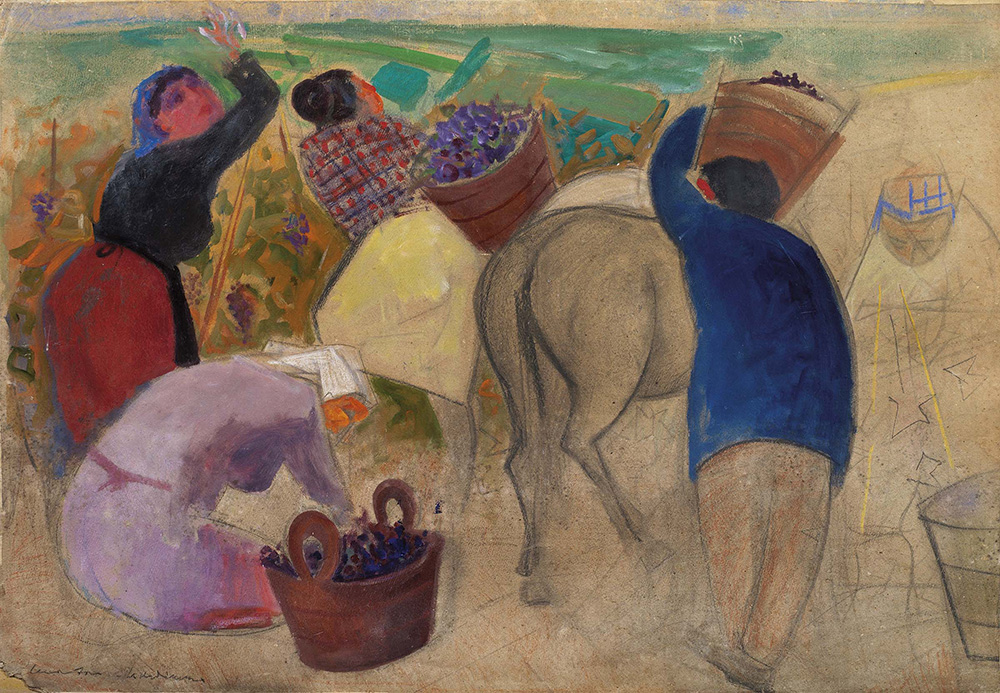 Mario Mafai Roma 1902 - 1965 La vendemmia Olio, carboncino e pastello su cartone, cm. 68,5x98 Firma e titolo in basso a sinistra: Mafai - La vendemmia. Certificato di Giulia Mafai in data 11.03.88 (in fotocopia)