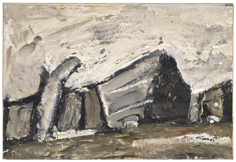 Mario Sironi Sassari 1885 - Milano 1961 Montagne e grande albero Tempera...