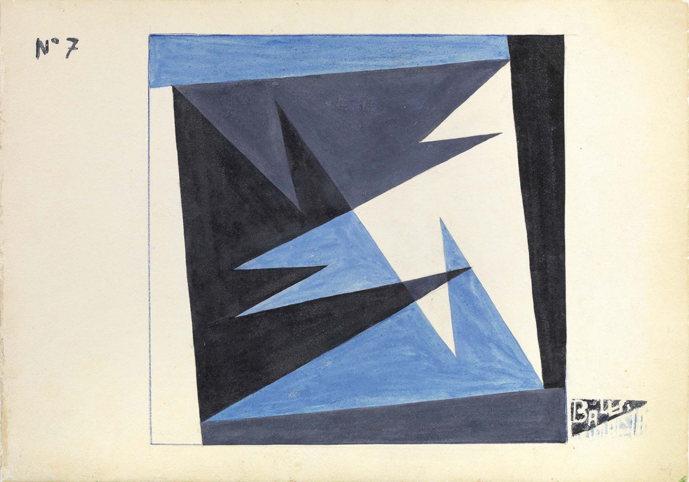 Giacomo Balla Torino 1871 - Roma 1958 Linee spaziali, 1925 ca. Grafite, matita e tempera su carta applicata su tela, cm. 24,5x35 Timbro in basso a destra: Balla / Futurista; in alto a sinistra: N. 7. Storia Casa Balla, Roma; Collezione privata