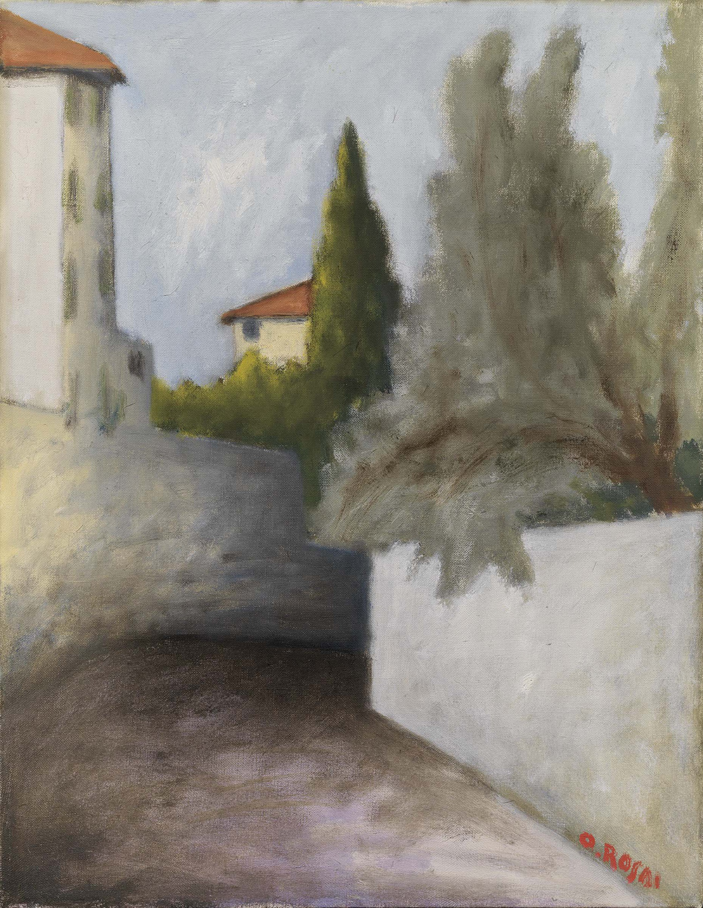Ottone Rosai Firenze 1895 - Ivrea (To) 1957 Strada, 1955 ca. Olio su tela, cm. 64,8x50,2 Firma in basso a destra: O. Rosai. Certificato su foto di Luigi Cavallo, Milano, 20 febbraio 2001