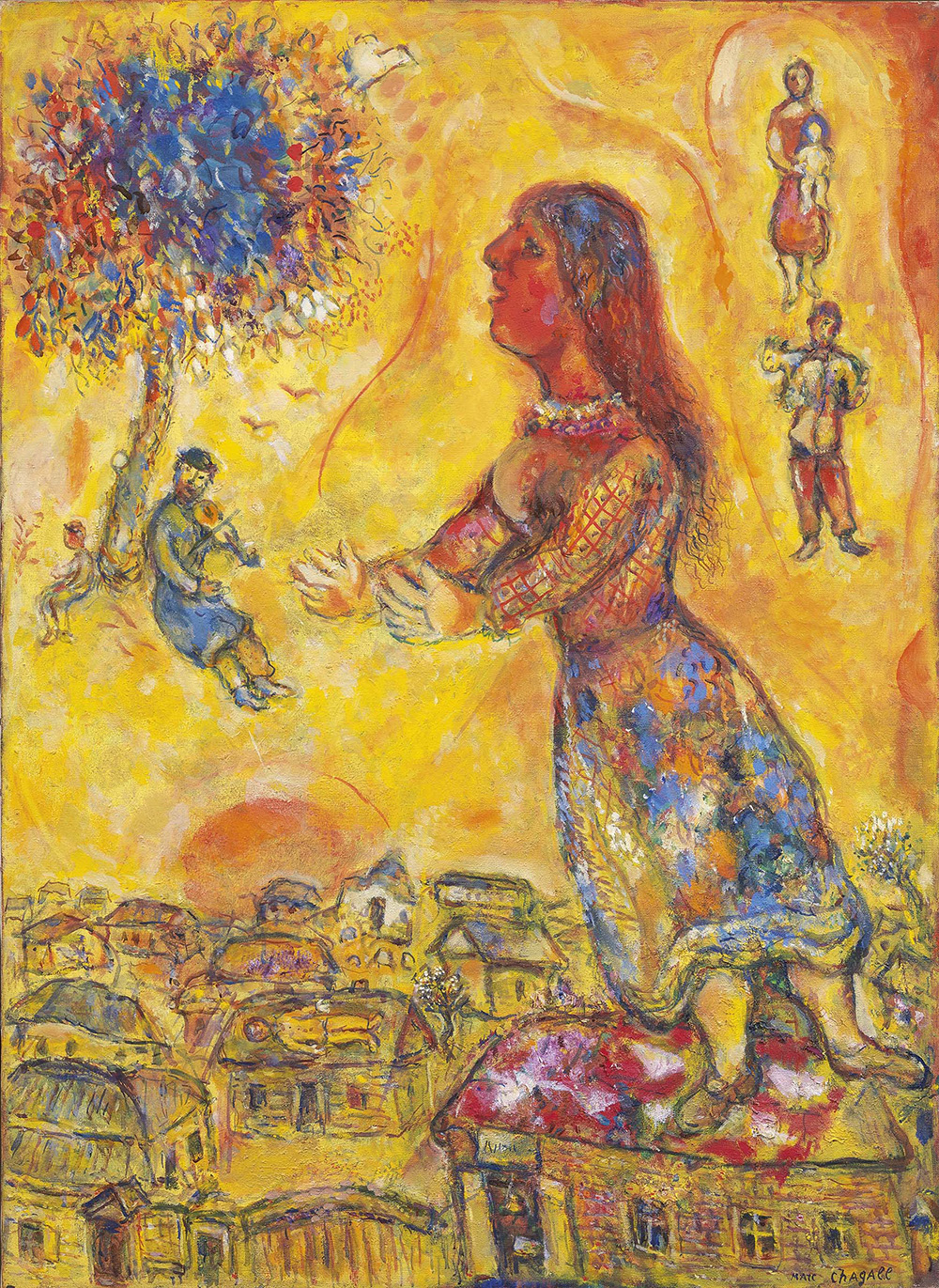 Marc Chagall Vitebsk 1887 - Saint Paul de Vence 1985 Arbre et maisons, 1970 Olio su tela, cm. 100x73 Firma in basso a destra: Marc Chagall, firma al verso sulla tela: Chagall / Marc; sul telaio: due timbri Galleria Torbandena, Trieste, con n. 1674: etichetta Galerie Maeght, Paris, con n. 12438 (opera datata 1968-71). Storia Galleria Maeght, Parigi; Galleria Torbandena, Trieste; Galleria Farsetti, Prato; Collezione privata Certificato su foto di Jean-Louis Prat, Comité Marc Chagall, Parigi, 20 maggio 2015, con n. 2015041. Esposizioni Marc Chagall, opere dal 1927 al 1981, Farsettiarte, Focette, Cortina d'Ampezzo, Prato e Milano, luglio - novembre 1992, cat. n. 16, illustrato a colori. Bibliografia Marco Valsecchi, Marc Chagall, opere scelte, Centro Arte Internazionale, Milano, 1972, tav. 11