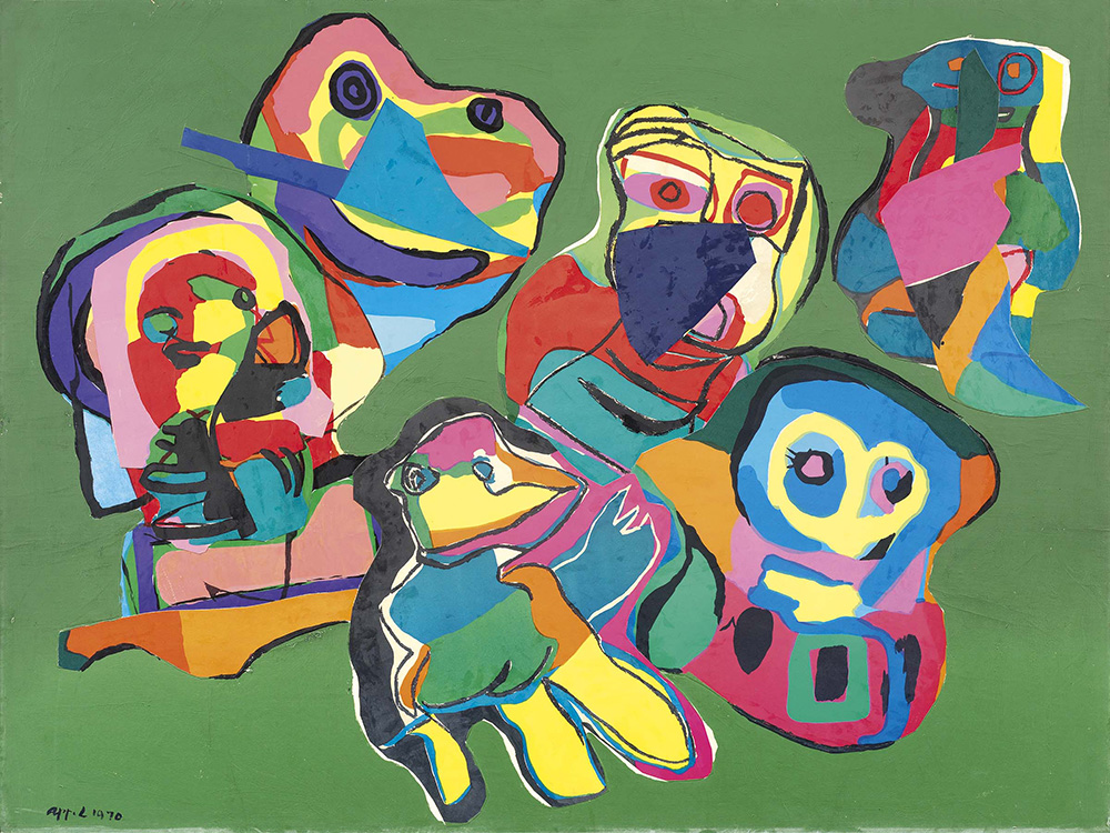Karel Appel Amsterdam 1921 - Zurigo 2006 Figure, 1970 Olio e collage su carta applicata su tela, cm. 123x162,5 Firma e data in basso a sinistra: Appel 1970. Al verso sulla tela: etichetta e timbro Galleria S. Erasmo, Milano