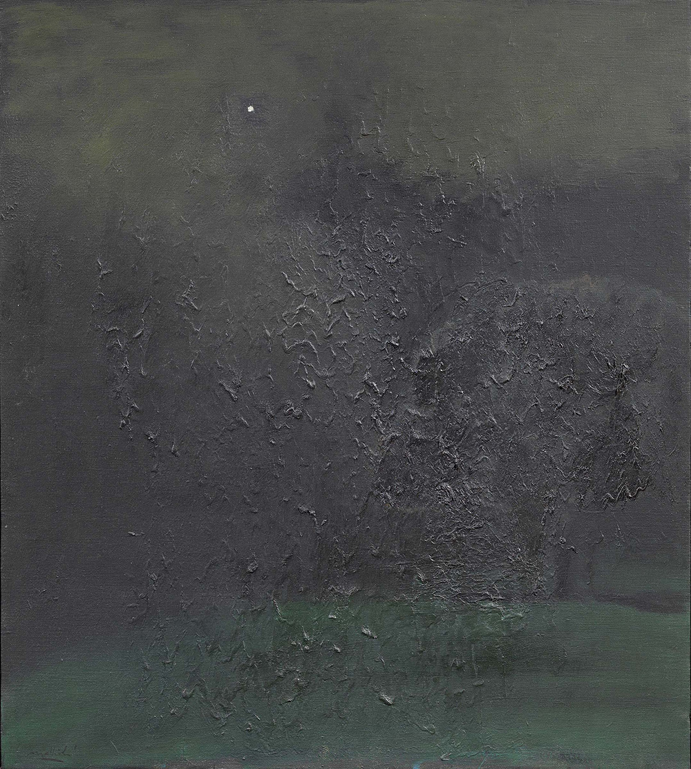 Carlo Mattioli Modena 1911 - Parma 1994 Notturno, 1974 Olio su tela, cm. 90x80 Firma in basso a sinistra: Mattioli; firma, data e titolo al verso sulla tela: Mattioli / 1974 / "Notturno". Esposizioni Carlo Mattioli. Opere 1944 - 1984, a cura di Pier Carlo Santini, Milano, Palazzo Reale, 1984, cat. p. 71, n. 56, illustrato a colori