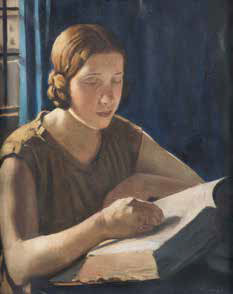 Ernö Abonyi Budapest 1884 – 1941 DONNA CHE LEGGE olio su tela, cm 50x40. Firmato in basso a destra: A. Bony. E