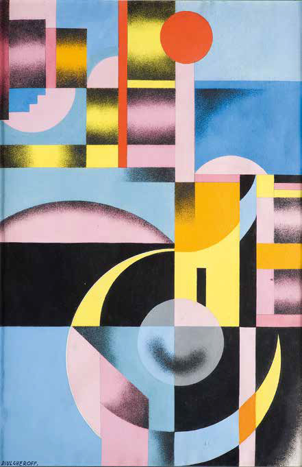 NICOLAJ DIULGHEROFF Kjustendil 1901 – Torino 1982 ORIENTE DAL CICLO “COMPOSIZIONI” tempera su cartoncino, cm 57x38. Firmata in basso a sinistra: Diulgheroff Iscritto al verso: Diulgheroff. Oriente, 1926 Dal ciclo “Composizioni”. Tempera 38x57 # 349-8 Autentica su fotografia firmata da Radoslav Diulgheroff in data Torino 31 ottobre 2000.