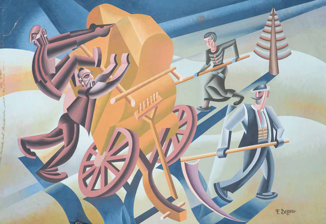 FORTUNATO DEPERO Fondo 1892 - Rovereto 1960 LA FIENAGIONE tempera su cartoncino, cm 68x97. Firmato in basso a destra: F. Depero Provenienza: Roma, collezione privata