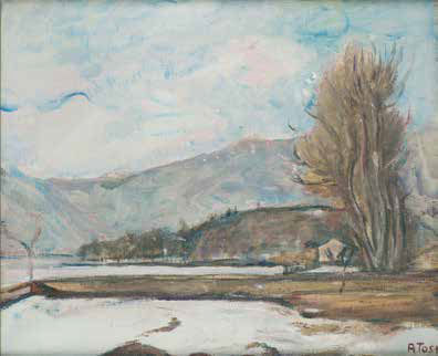 ARTURO TOSI Busto Arsizio 1871 – Milano 1956 PAESAGGIO olio su tela, cm 50x60. Firmato in basso a destra: A.Tosi Provenienza: Milano, Galleria Vittorio E. Barbaroux (timbro al verso); Milano, collezione privata.