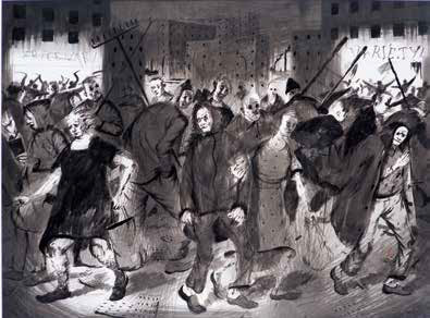 KEN CURRIE North Shields 1960 STUDY FOR “THE STREET”, 1990 china su carta, cm 45x60.
